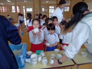 とってもシンプルな塩おにぎりとお味噌汁という給食でしたが、大満足の子どもたち。給食が終わってからも、「おにぎり美味しかった」「また、食べた~い」と年長さんとの思い出作りとして企画したおにぎり作りは大成功✨おにぎり、お味噌汁、ゼリーともに完食でなんとなんと残飯0でした。