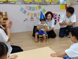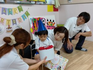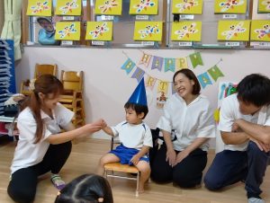 お祝いをするお友達も、お話をよ~く聞いてくれたり、パチパチと拍手したり、ハッピーバースデイのお歌も歌ってくれました🎶