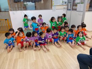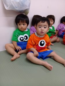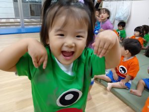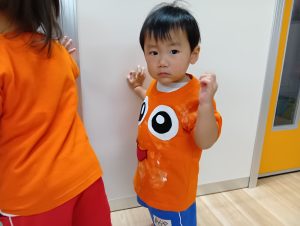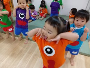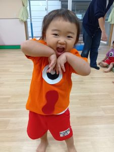 一人ひとりちがった自分だけのオリジナルおばけT シャツを着た、ナーサリー組のカワイイちびっこおばけさんたち👻♡