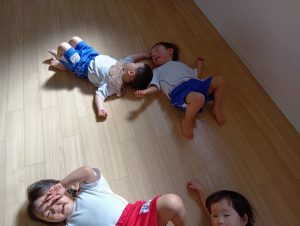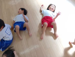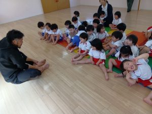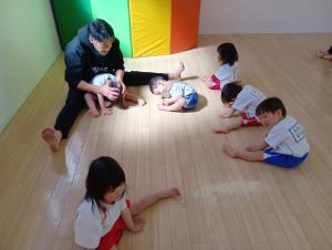 ワニさんの時は、ワニになりきっている先生たちの背中にのって楽しむ子ども達の姿も見られます(笑)