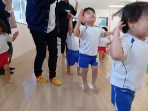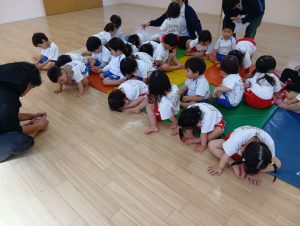 例えば、体操で「くまさんでここまできてね~」の声かけだけで、くまさん歩きをしてこちらまできたり。