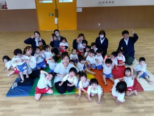 子ども達は「おわかれ」がまだ分かっておらず、来週もまだ笹山先生いると思っていることに少し切なさを感じますが、大好きな笹山先生と最後にギューをして、一緒に写真を撮りました📸✰