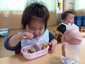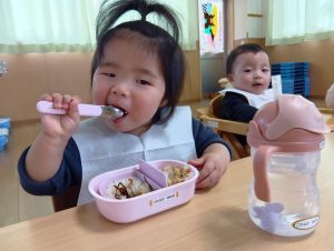 0歳児さんも食具をつかって🎶モリモリ食べています!!!✨