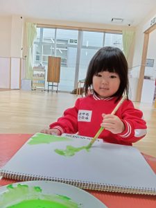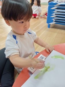 絵の具を使って色をぬりぬり~💚