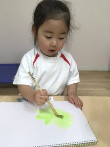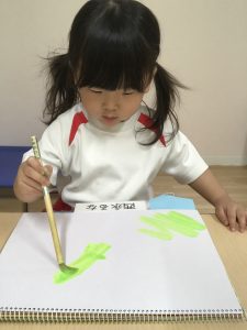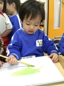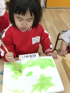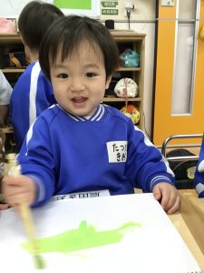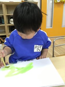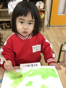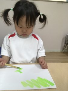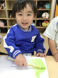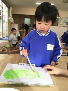 絵の具を使って色をぬりぬり~💚
