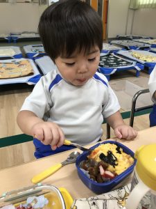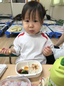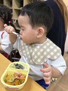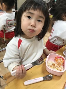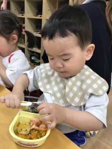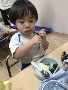 0歳児さんも食具をつかって🎶モリモリ食べています!!!✨