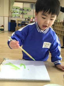 上手に塗ることができ驚きました!(^^)!「はじめて」のことに戸惑っていたあの頃とは違い、興味津々なみんなの姿に感動しました☆彡