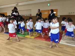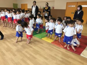 例えば、体操で「くまさんでここまできてね~」の声かけだけで、くまさん歩きをしてこちらまできたり。