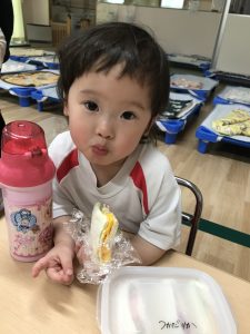 ちなみに、手を繋ぐペアは、「さっお友達と手をつないでね~」という先生の声かけで自分たちでお友達を探して手を繋いでいます(笑)