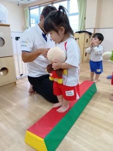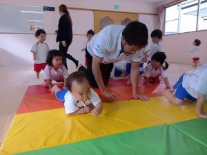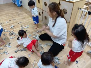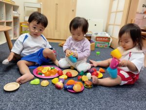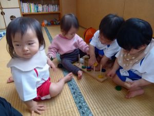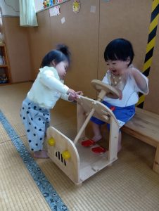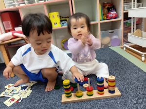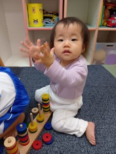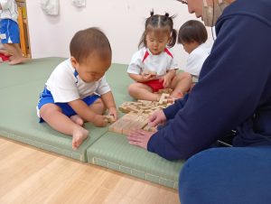 そして0歳児さん、1歳児さんともに「お友達」と関わって遊んでいる姿も沢山見られます(^^♪
