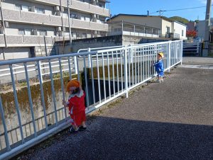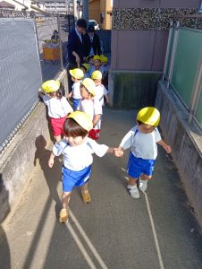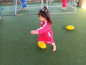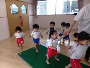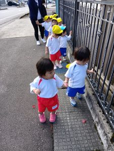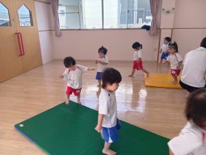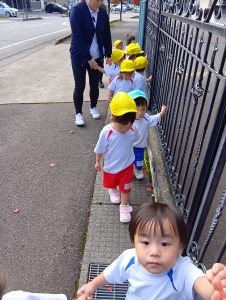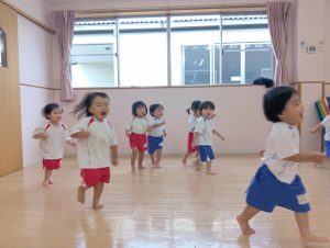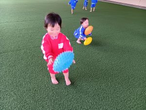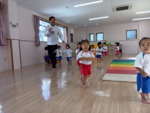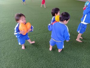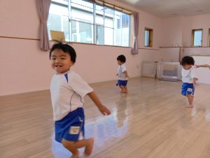 晴れの日にはお散歩に出かけたり、ピロティで身体を動かして遊びます!