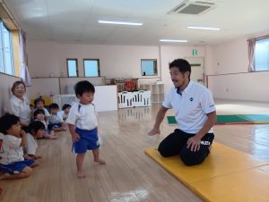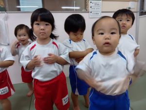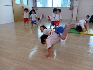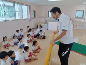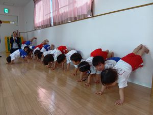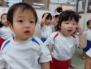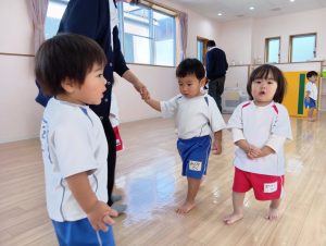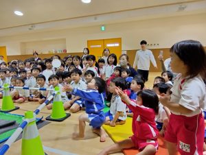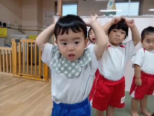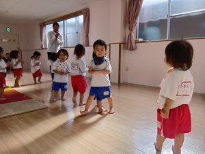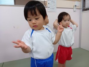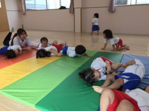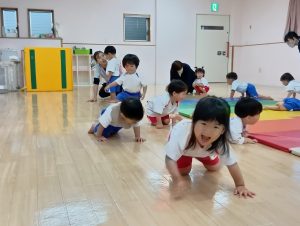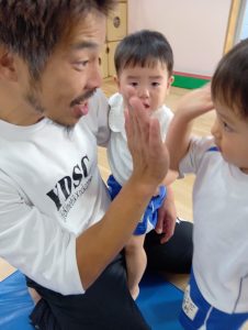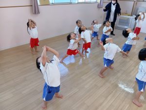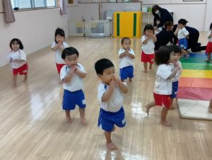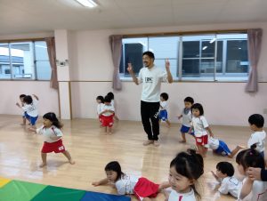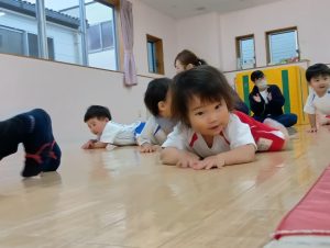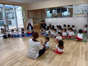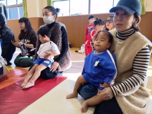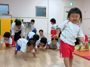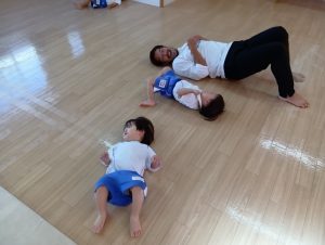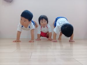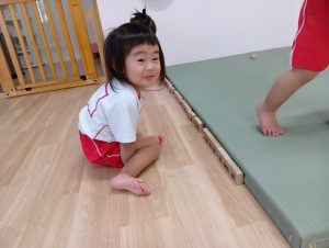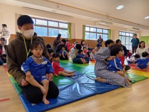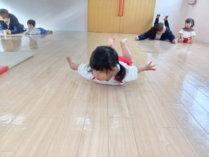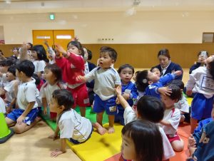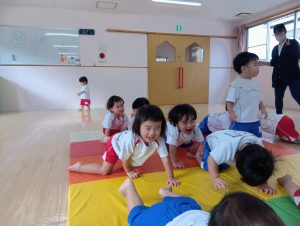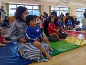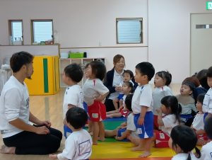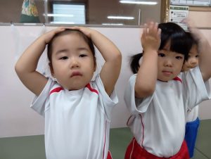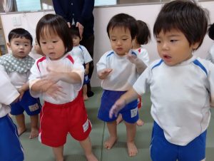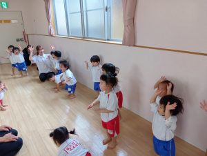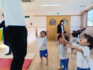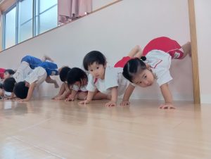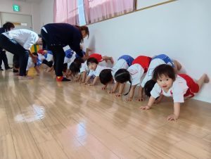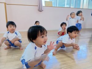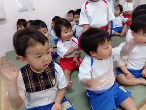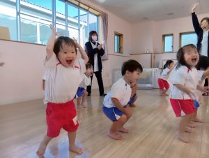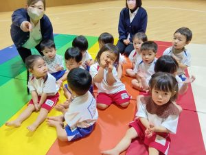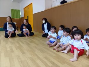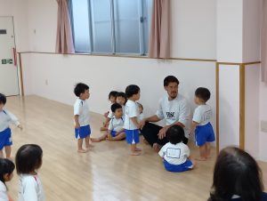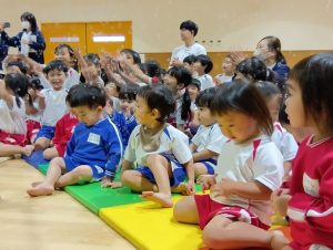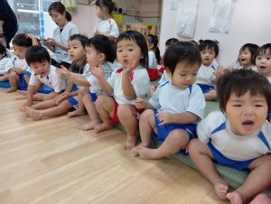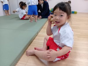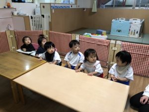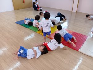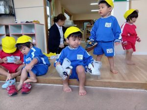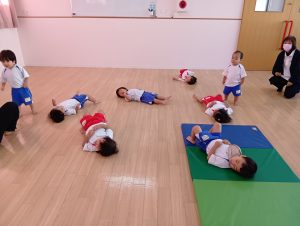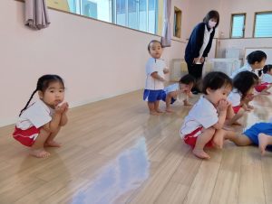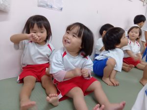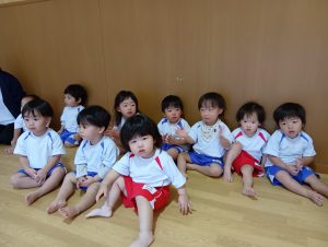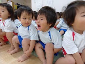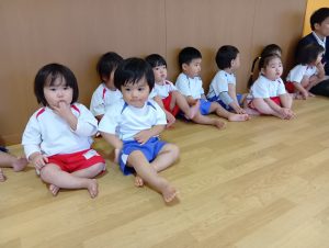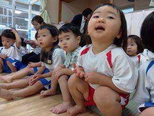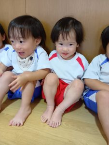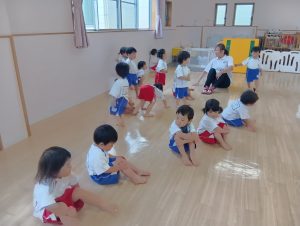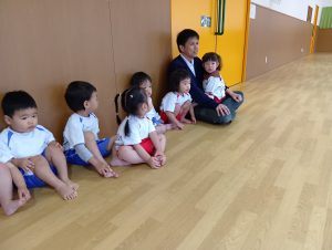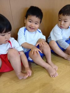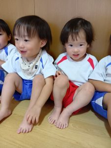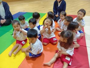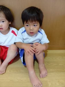 年中さんのかっこいい姿をみて、体操座りを真似していた子ども達でした💛