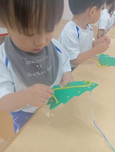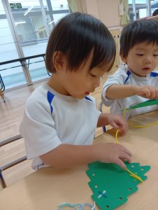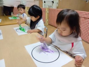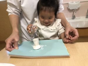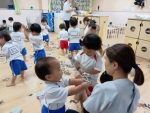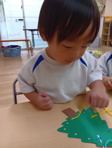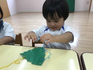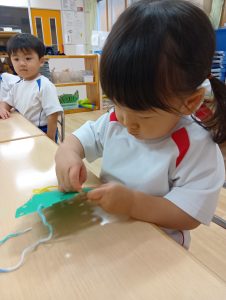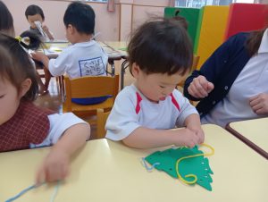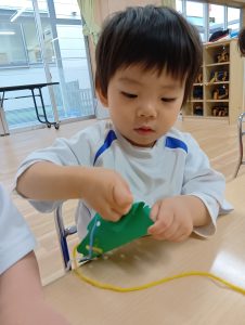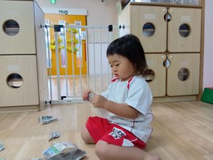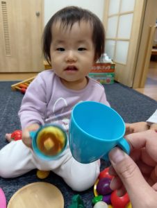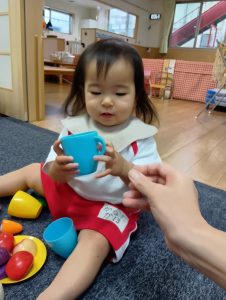 ナーナリー組では「自分でやってみよう!」の気持ちを大切にしています💛