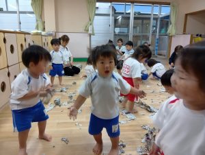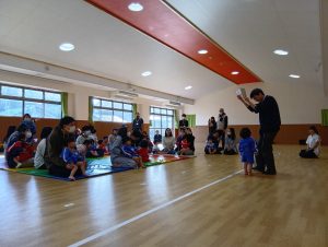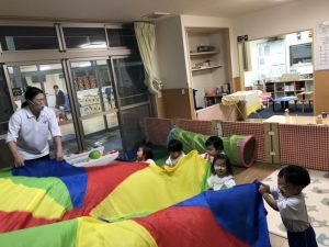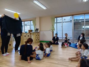 この黒い布は北風を表しており、このお歌になると子ども達は興奮(笑)