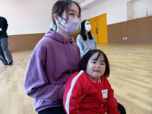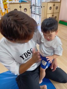 私たちがお手伝いする前になんとか自分で履こうと頑張っている子ども達!