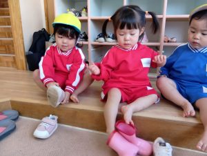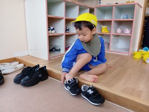 靴も脱ぐことができるようになり、そして自分で靴を履こうと頑張る姿も見られます✊