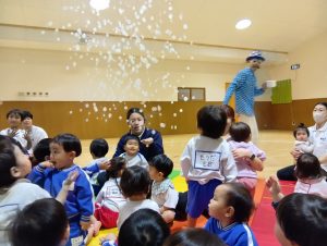 そして、しゃぼん玉ショーや、年中さんの体操を観に行ったりもしました☆彡