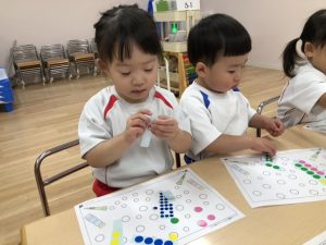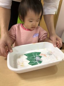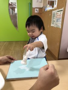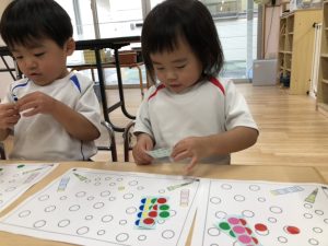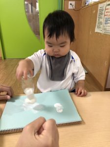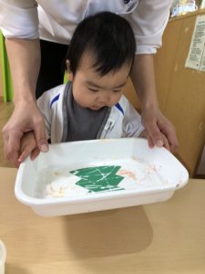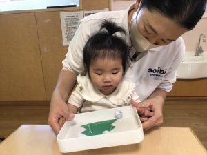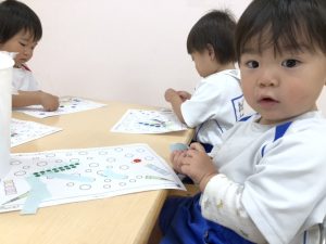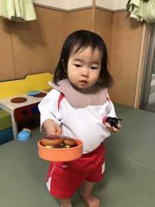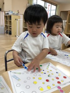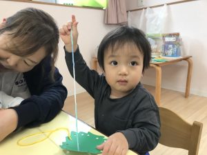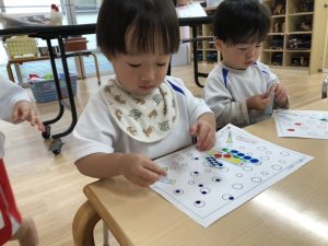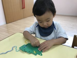 ナーナリー組では「自分でやってみよう!」の気持ちを大切にしています💛