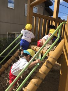晴れの日にはお散歩に出かけたり、ピロティで身体を動かして遊びます!