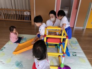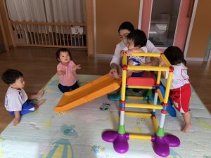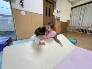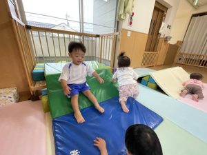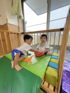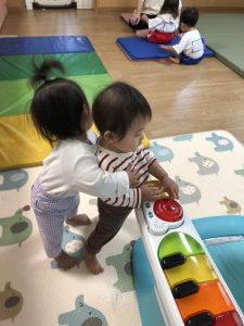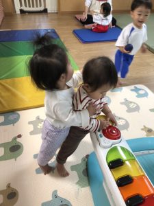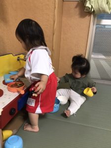 そして0歳児さん、1歳児さんともに「お友達」と関わって遊んでいる姿も沢山見られます(^^♪