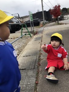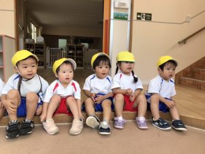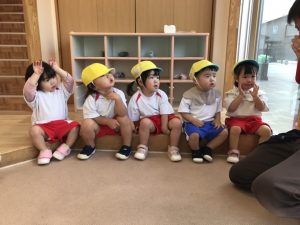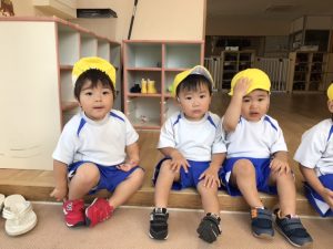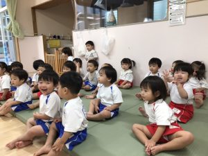 年中さんのかっこいい姿をみて、体操座りを真似していた子ども達でした💛