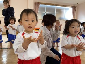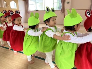 なので、子ども達は「カエルのたいそう」を流すとすぐにニコニコになり手を叩いてノリノリです💓