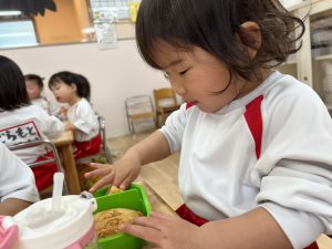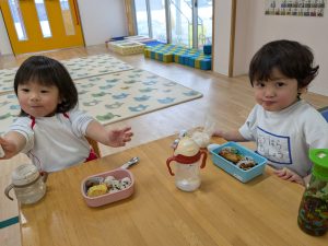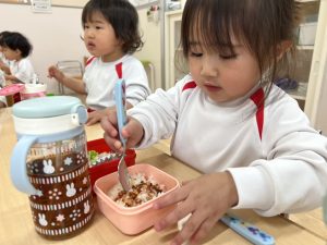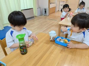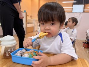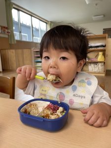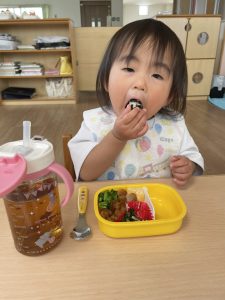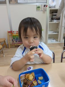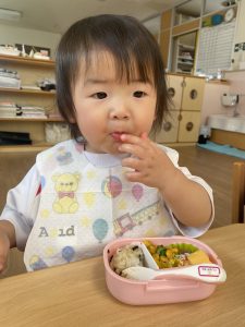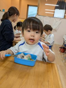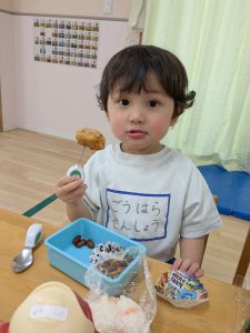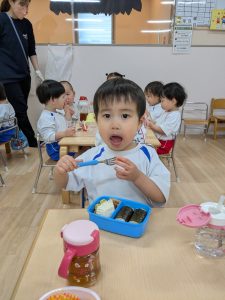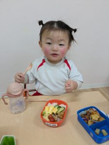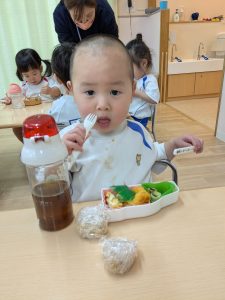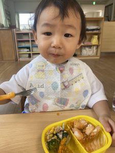 帰ってきてから「よく頑張ったね!明日も頑張ろうね~!」とモリモリとお弁当を食べました😋!