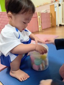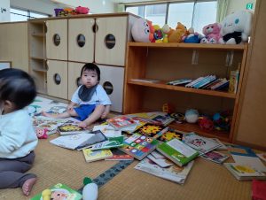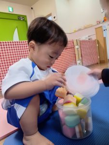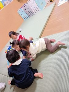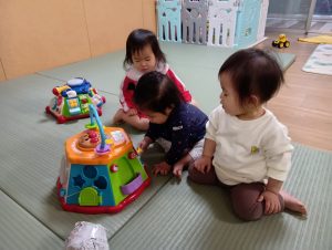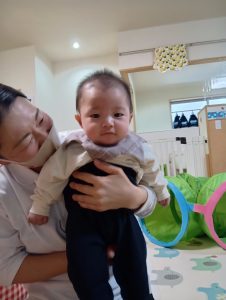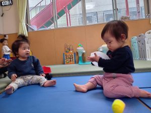 ナーサリー組では一番ちいさいお友達になります🎶0歳児さんも1歳児さんも自分よりちいさいお友達に興味深々💖