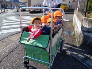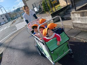 今日は、はじめての試み!!お散歩車を用意せず、全員で一緒に歩きましたよ~🌞!