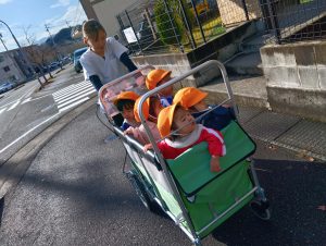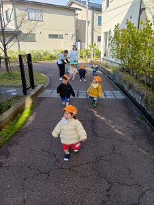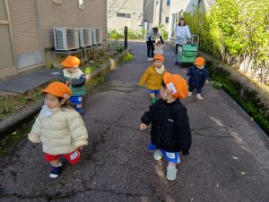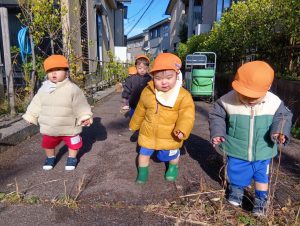 1歳児さんも、お誕生日会の前にお散歩に行ったのですが・・写真撮ることができませんでした💦