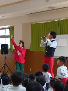 番組で御馴染みの歌を披露してくれ、子ども達もノリノリで手を振ったり、歌ったりと大盛り上がりでした。