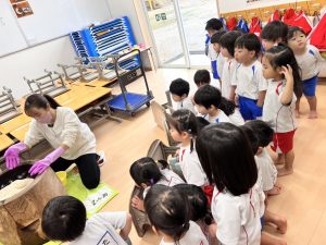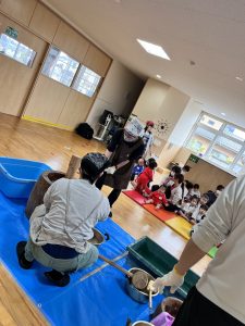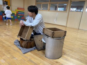 実物を見せて、実際にやってみて、子ども達に伝えることがねらいです。