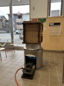 済美幼稚園のもちつきは、木のせいろを使用してお米を蒸すところからはじめます。