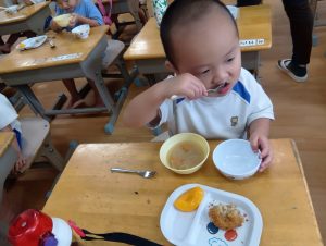 みんなで食べる給食はとても美味しいね♪