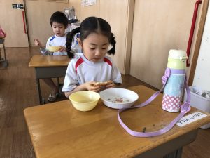 月曜日の朝登園した時にはもう園内にはもち米を炊いているいい匂いが…🤤💕