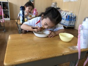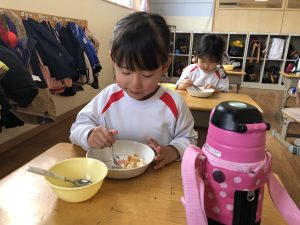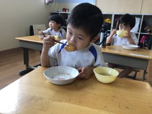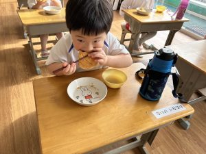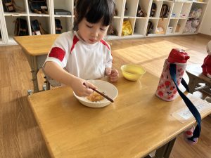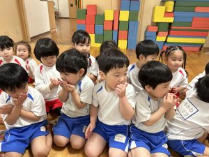 お休みが長かったこともあり、少し泣いてしまう子もいましたがすぐに幼稚園の生活を思い出して過ごしている様子が見られましたよ💪