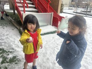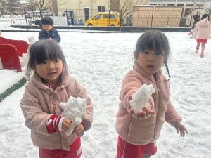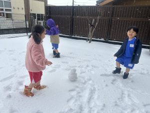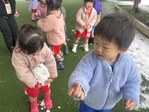 少しだけ雪が降った時にピロティで雪を触ることができました⛄️
