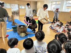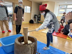 みんなでもちつきの見学をしました♡
