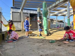 天気がいい日が多く、園庭で遊ぶこともできてきます🎵