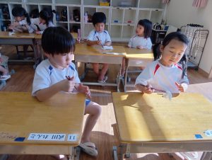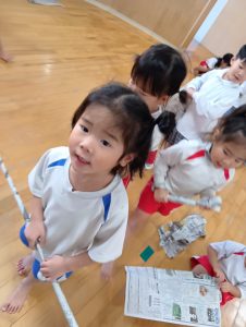 天気は雨予報が続き、外遊びが大好きな年少組にとっては、残念そうにしていました☔