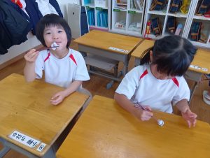 これからも、お箸に触れながら給食の時間にも少しずつお箸に移行して行こうと思います😊✨