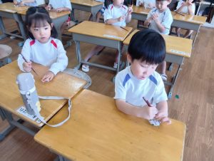 自分が作りたい形を想像して曲げたりテープを使ってみたりと各々の作品ができて楽しんでいました♥