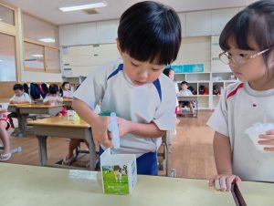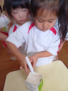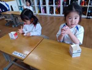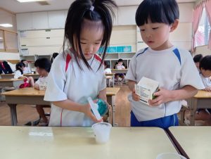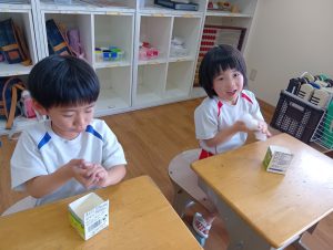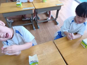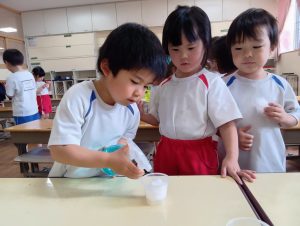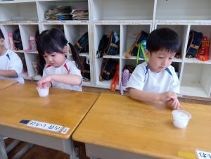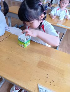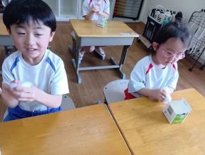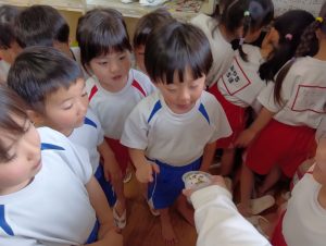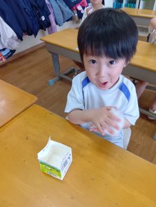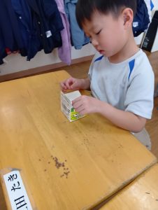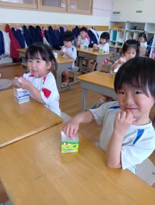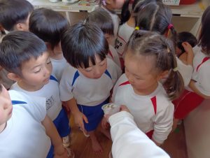 「大きくなーれ!!」と言いながら「まだかなー?」「もう食べれる?」と楽しみにしている子どもたちでした😀