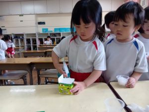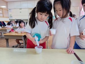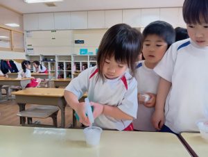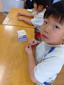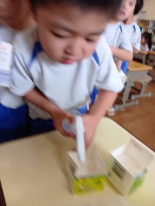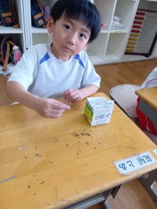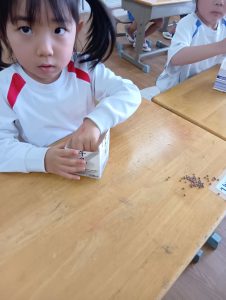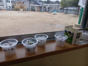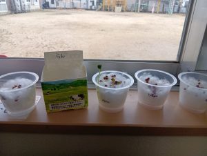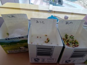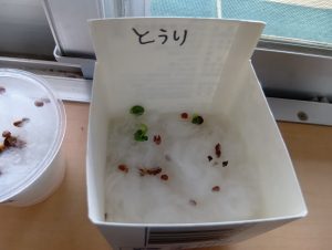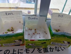 さて、終業式までに無事すくすくカイワレ大根は育ち、おみそ汁に入れて食べれるのでしょうか…笑