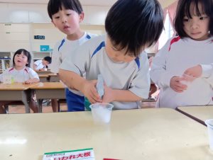2月にカイワレ大根の種を自分たちでまいて、育てることに!