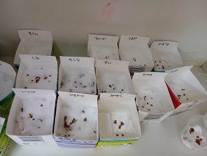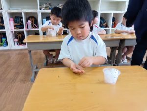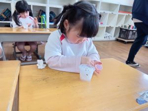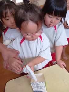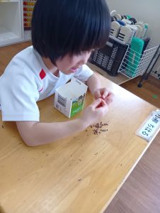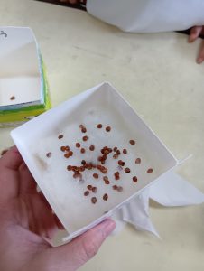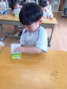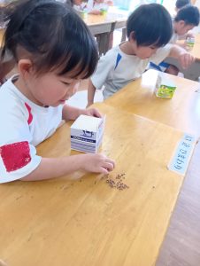 種と種がくっつかないように離してあげたり、子ども達にとっては難しい…😅それでも、種を摘んで1個ずつ丁寧に置いていました♥