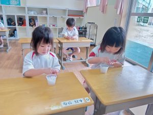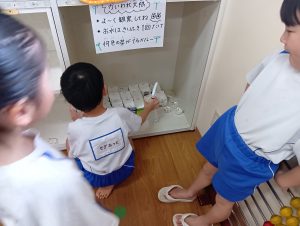 毎日朝登園したら自分たちで水をあげています!