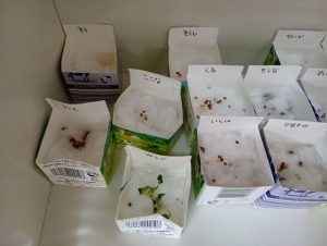 綿をまず霧吹きで濡らしてその後は自分たちで種をまきました。