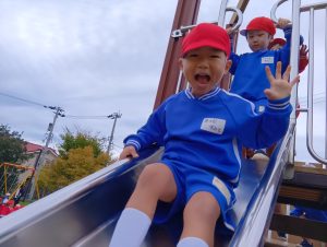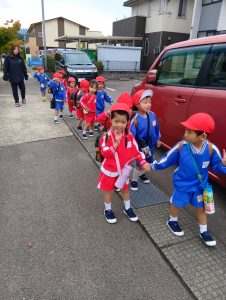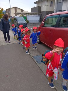 少し寒かったですが子ども達は走って遊んでまだまだ体力が有り余っている様子でした(*^^*)帰り道・・工事中の方に「頑張ってね~✋」と手を振りながらルンルンで帰ってきました😊