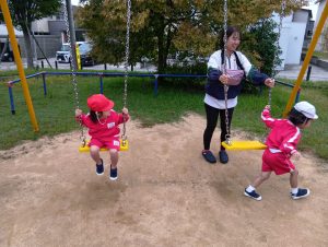 公園では、ブランコ・滑り台・かくれんぼにどんぐり探し!!色々な遊びを見つけて楽しむ事が出来ました🎵